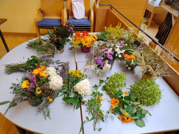 Hundert Kränze und Gestecke haben die fleißigen Damen vom Gartenbauverein in der letzten Woche gebastelt.